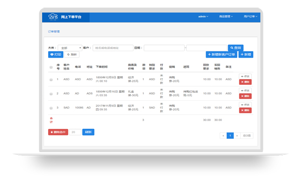 網(wǎng)上下單管理平臺(tái)