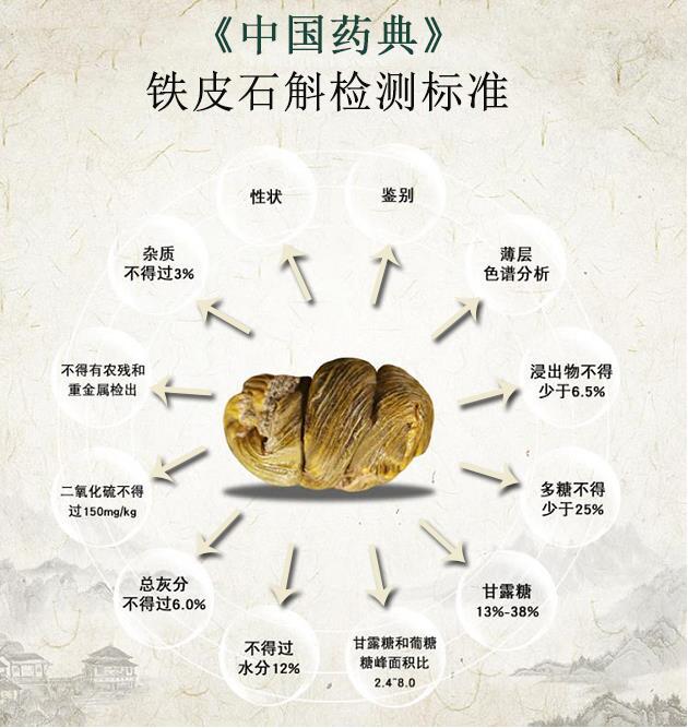 《中國藥典》對鐵皮石斛一共有12項(xiàng)檢測指標(biāo),分別是“多糖、浸出物、甘露糖”等。