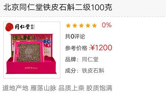 同仁堂鐵皮石斛二級100克,售價(jià)1200,相當(dāng)于12元每克。 利壽鐵皮石斛在多位專家的指導(dǎo)下,成功研究出仿野生林下鐵皮石斛種植方法, 產(chǎn)品獲得國家農(nóng)產(chǎn)品地理標(biāo)志,國家有機(jī)認(rèn)證,鐵皮石斛價(jià)格雖然不便宜,但利壽鐵皮石斛是產(chǎn)地直銷,沒有中間商賺差價(jià), 價(jià)格自然便宜很多,再加上每天只要服用3~6克就夠了,其實(shí)只要幾根煙的錢,您就可以為您和家人的健康加油了