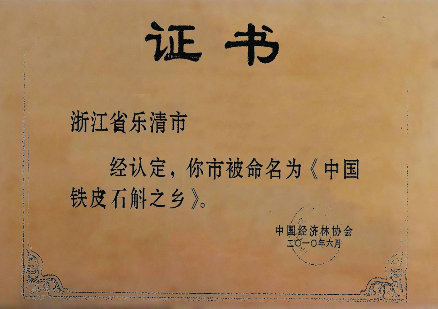 2010年被中國經(jīng)濟(jì)林協(xié)會評為“中國鐵皮石斛之鄉(xiāng)”
