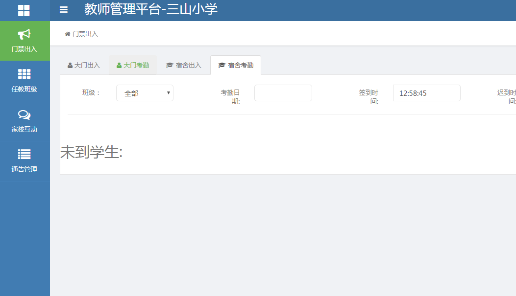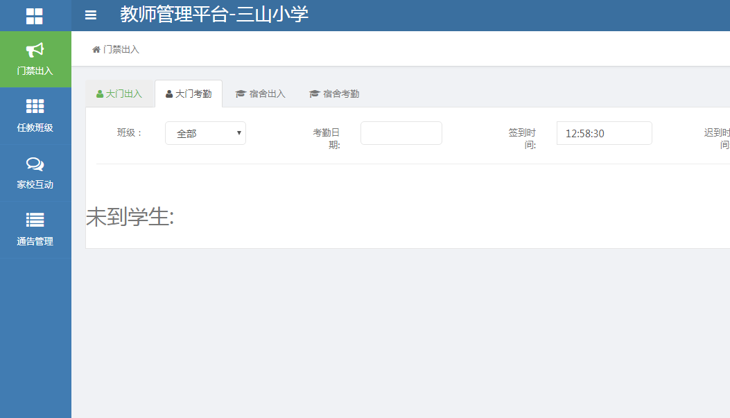 教師端可 檢查學(xué)生的出入校門考勤情況,可管理自己的班級(學(xué)生信息、班級課程表、班級教室、 學(xué)生請假、班級考試、班級作業(yè)),可和家長互動聯(lián)系,可管理通知公告.