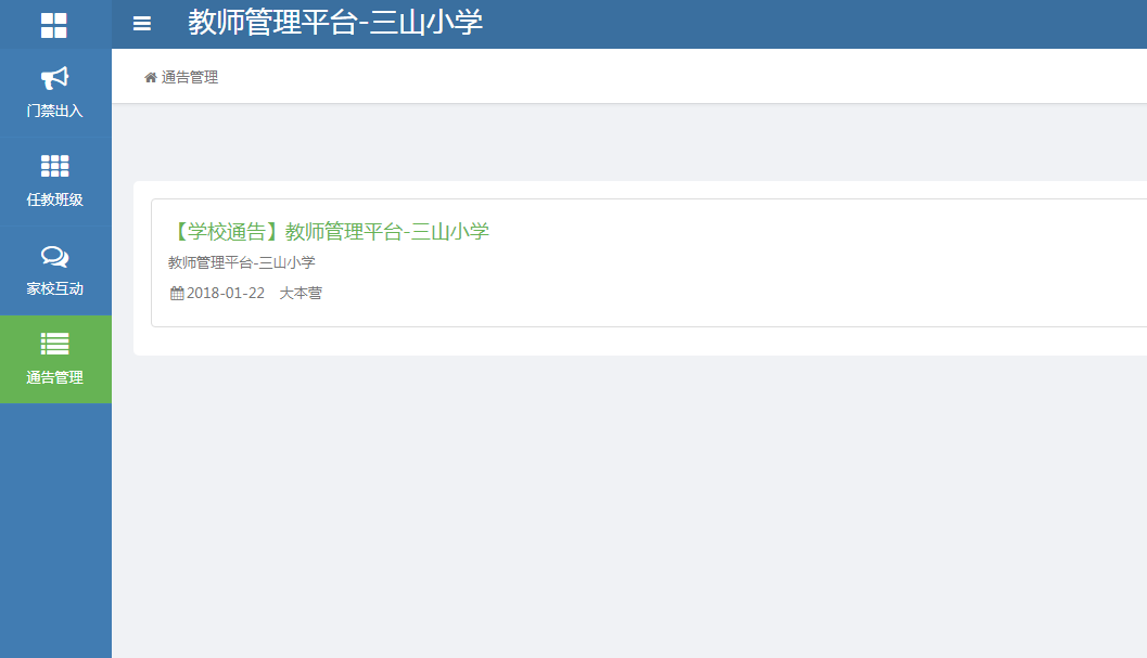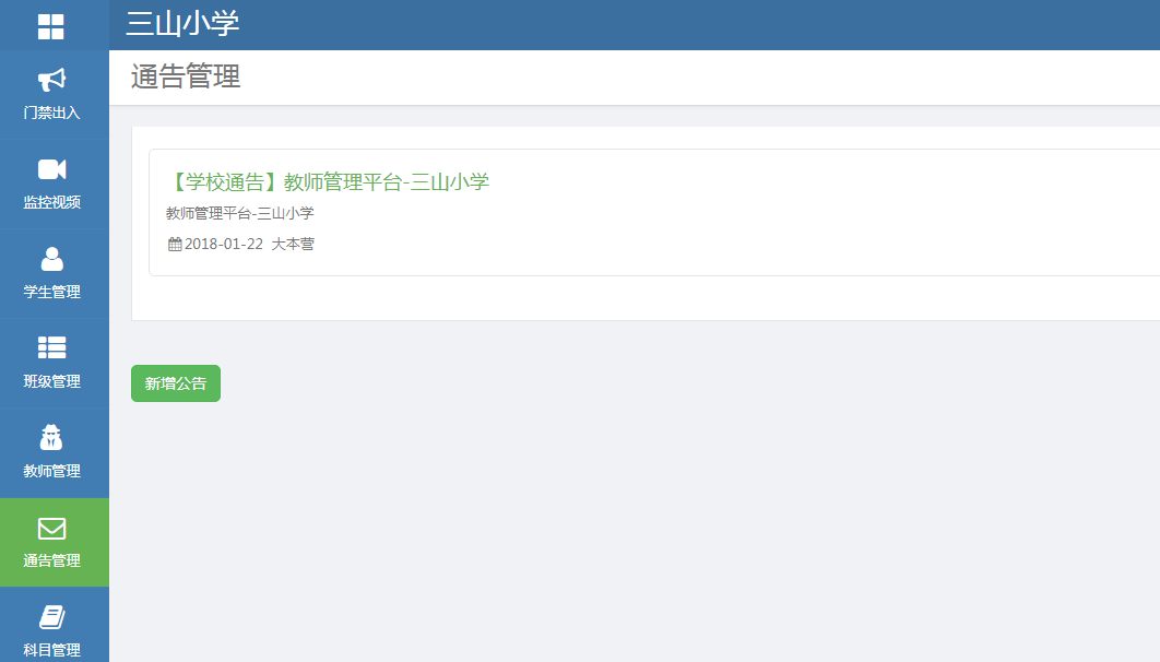 顯示所有的總管理員或教師發(fā)布的通知公告,教師可編輯和刪除 通知公告,可添加新的通知公告.