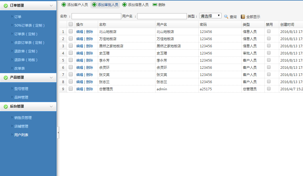 顯示所有的用戶信息,管理員可添加、編輯和刪除用戶列表,管理員可按(名稱、用戶名等)查詢用戶信息。