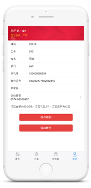 個(gè)人中心包括:顯示用戶的基本信息,用戶可自己修改密碼,顯示自己的訂餐總金額和次數(shù)。