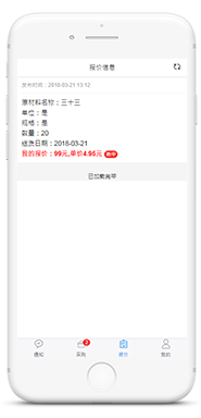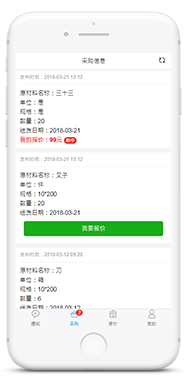 采購(gòu)信息包括:顯示所有的管理員發(fā)布的采購(gòu)信息,供應(yīng)商可以給該原料進(jìn)行報(bào)價(jià)