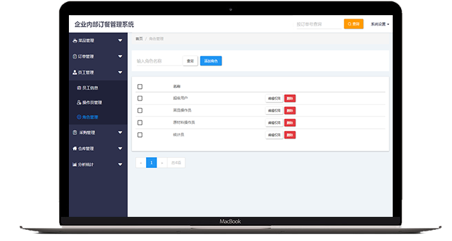 角色管理包括:可預(yù)先設(shè)定一個(gè)角色并給該角色添加權(quán)限、可查詢、編輯和刪除角色。