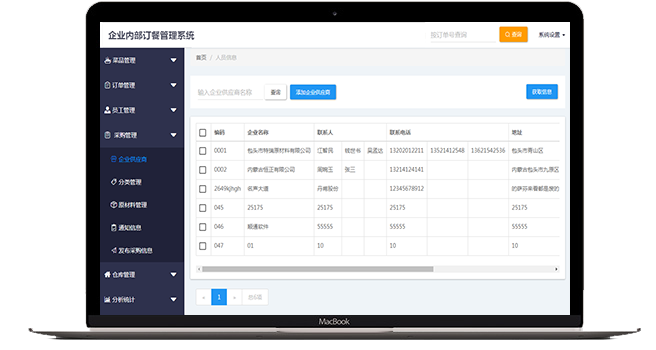 企業(yè)供應(yīng)商包括:顯示所有的企業(yè)供應(yīng)商信息,管理員可添加、編輯、查詢和刪除企業(yè)供應(yīng)商信息。