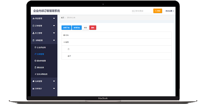 采購(gòu)分類包括:設(shè)置所有的采購(gòu)的分類,可添加上下級(jí)和刪除分類級(jí)別。