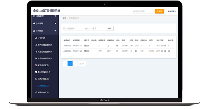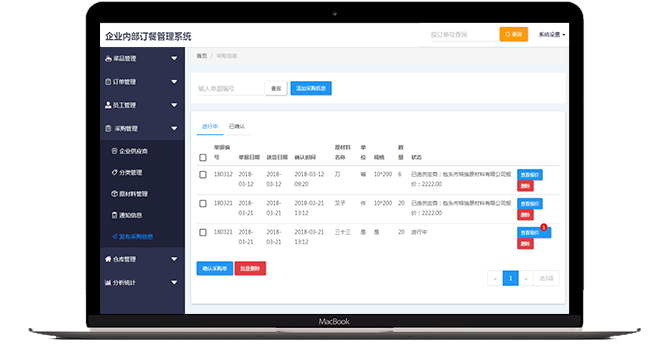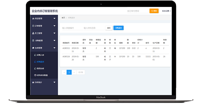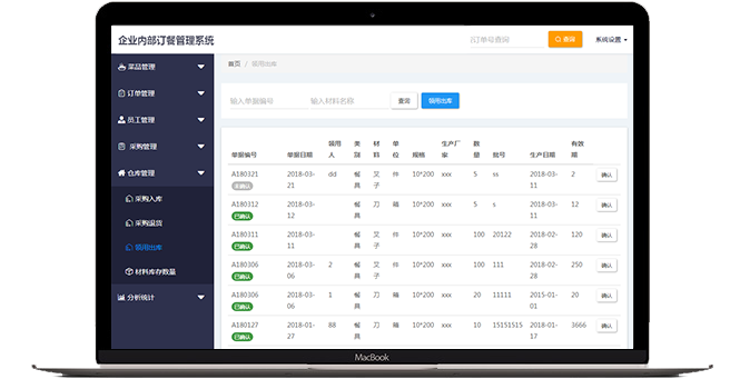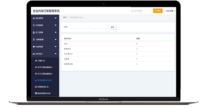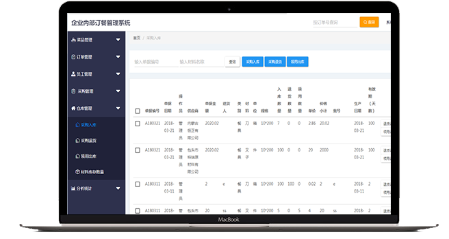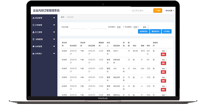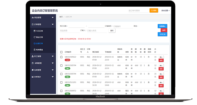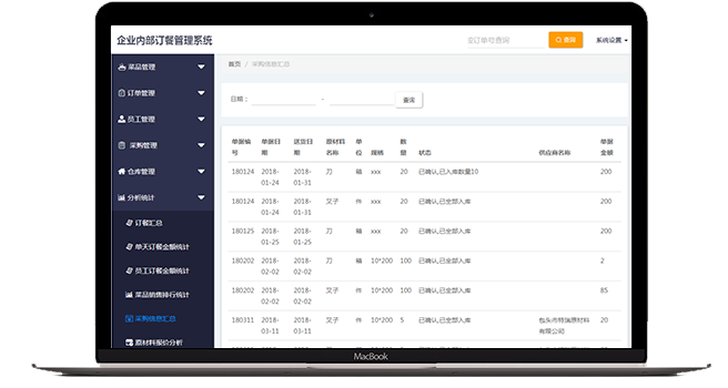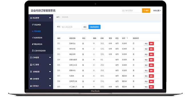 企業(yè)內(nèi)部訂餐管理系統(tǒng)包括:菜品管理、訂單管理、員工管理、采購(gòu)管理、倉(cāng)庫(kù)管理、分析統(tǒng)計(jì)。