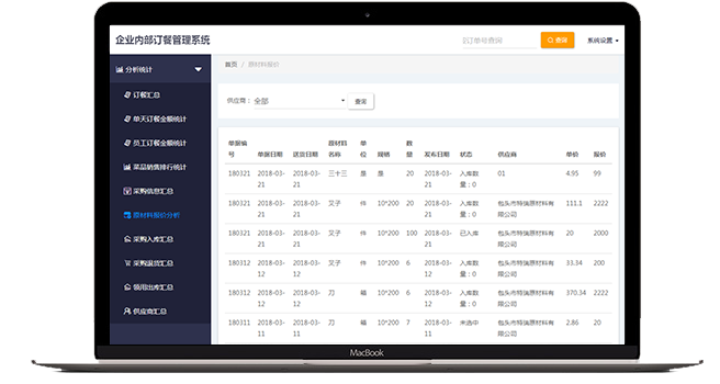 原材料報(bào)價(jià)分析包括:顯示所有的供應(yīng)商對(duì)原材料的報(bào)價(jià),管理員可查看單個(gè)供應(yīng)商的報(bào)價(jià)