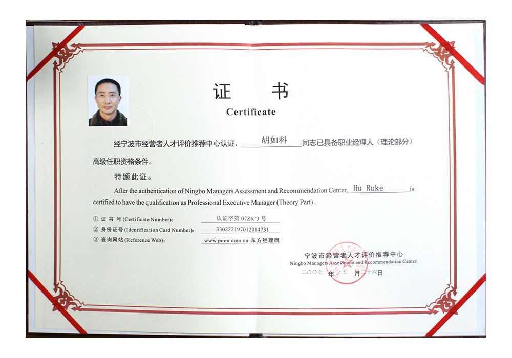 總經(jīng)理任高級(jí)職業(yè)經(jīng)理證書