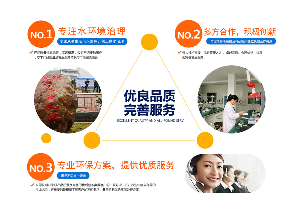 “注重技術研發,提供合理的污水解決方案,供給優質服務,改善生態環境,提高再利用”