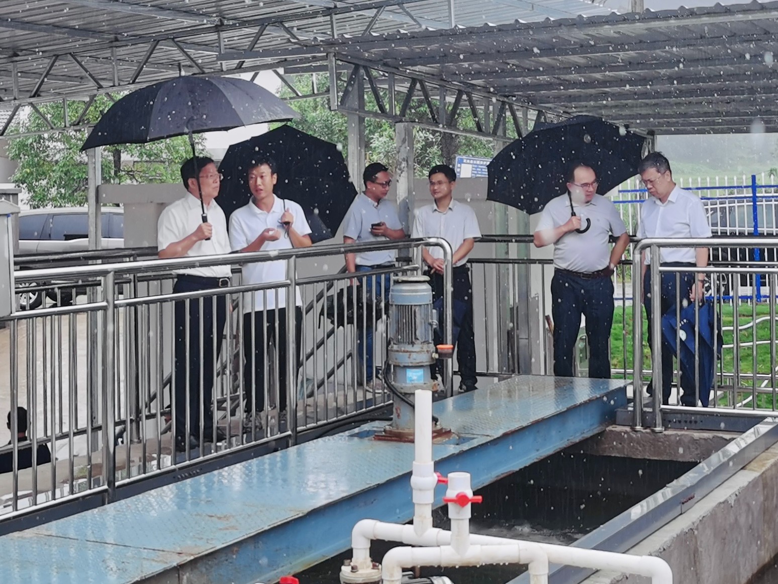 2024年8月20日上午,贛州市政協主席徐兵與定南縣政協主席陳文新一行領導,蒞臨我司定南縣南豐稀土尾水處理站進行調研指導,嶺北鎮黨委書記龍林峰陪同調研,南豐處理站負責人詳細匯報了相關工作情況。