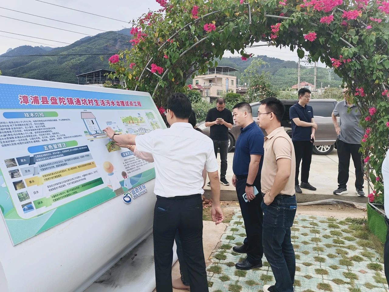 調(diào)研組深入現(xiàn)場,依次參觀了“101”管理模式下建設(shè)的管網(wǎng)、隔油池、太陽能自助便民利用井、便民利用井、末端達(dá)標(biāo)處理設(shè)施、噴灌系統(tǒng)和在線監(jiān)控檢測系統(tǒng),贊揚(yáng)了我司地下滲濾耦合技術(shù)在農(nóng)污領(lǐng)域的使用優(yōu)勢(shì)。
