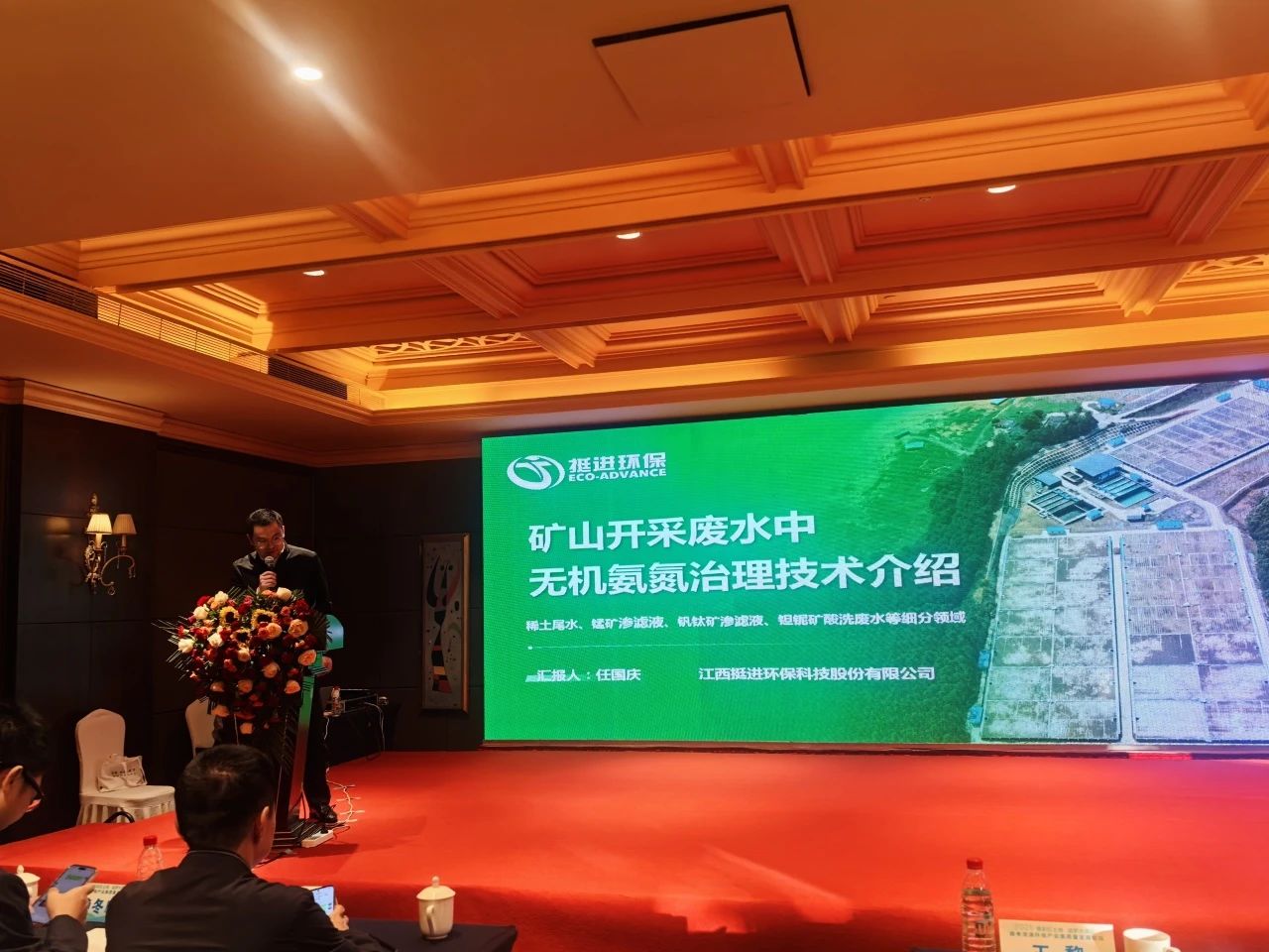 江西挺進環保作為環保領域的杰出企業代表,積極參與此次盛會,其副總裁寧小飛先生在會上發表了關于礦山開采廢水中無機氨氮治理技術的專題報告,引起了廣泛關注與熱烈反響。