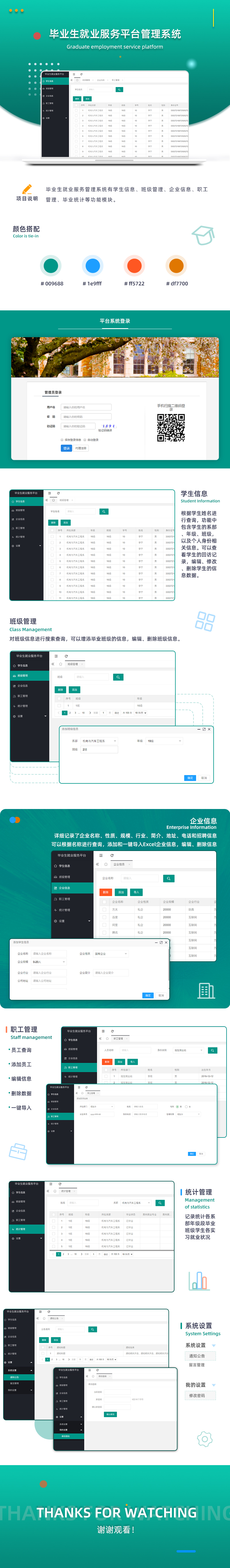 畢業(yè)生就業(yè)服務(wù)管理系統(tǒng)有學(xué)生信息、班級(jí)管理、企業(yè)信息、職工 管理、畢業(yè)統(tǒng)計(jì)等功能模塊。