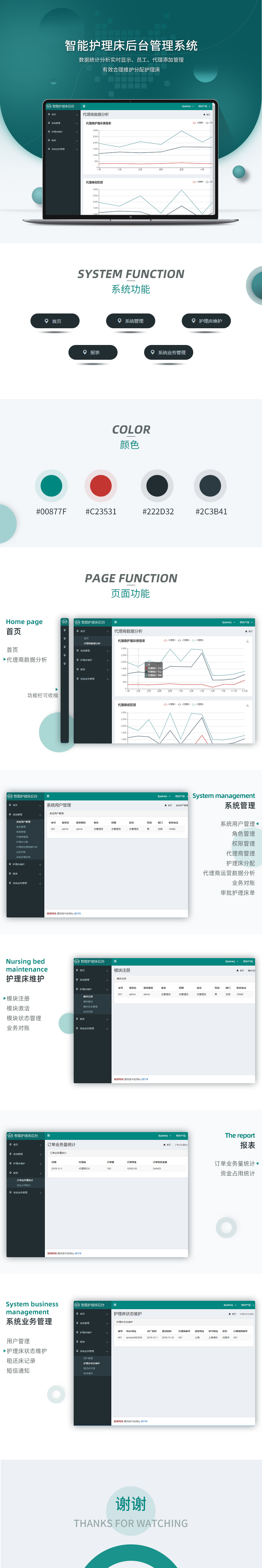 系統(tǒng)管理:系統(tǒng)用戶管理、角色管理、權(quán)限管理、代理商管理、護理床分配、代理商運營數(shù)據(jù)分析、業(yè)務(wù)隊長、審批護理床單